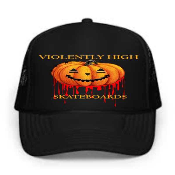 VIOLENTLY HIGH SKATEBOARD REJECTO-LANTERN BLACK TRUCKER HAT - ONE SIZE ADULT